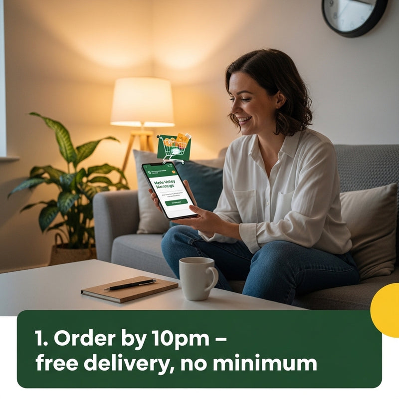 Our service is simple: place your order any time before 10pm and we collect your items from trusted local and regional suppliers the same night. Our delivery team begins their morning route at 5am, ensuring every order is placed silently at your doorstep before 7am. There is no delivery charge, no minimum order, and no subscription required — though a flexible weekly subscription option is available for customers who want the convenience of automatic delivery without any long-term commitment.